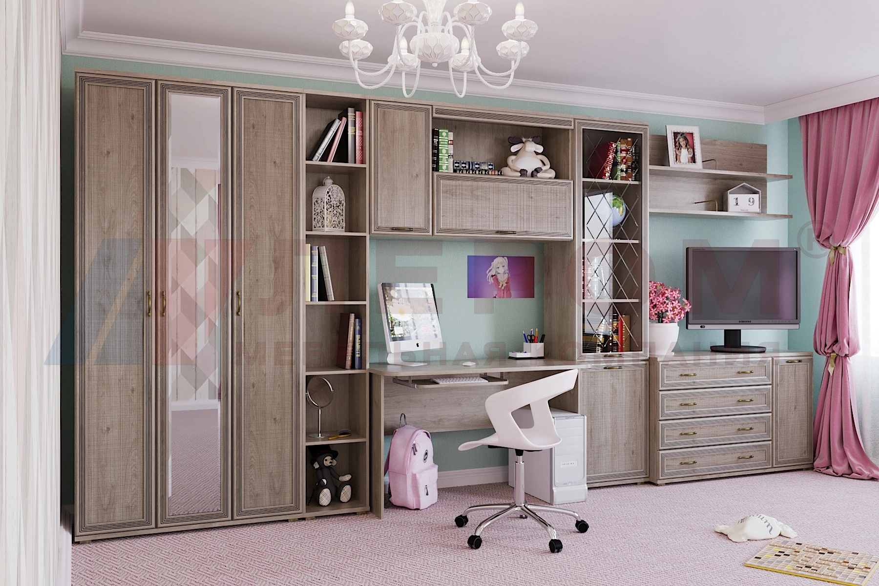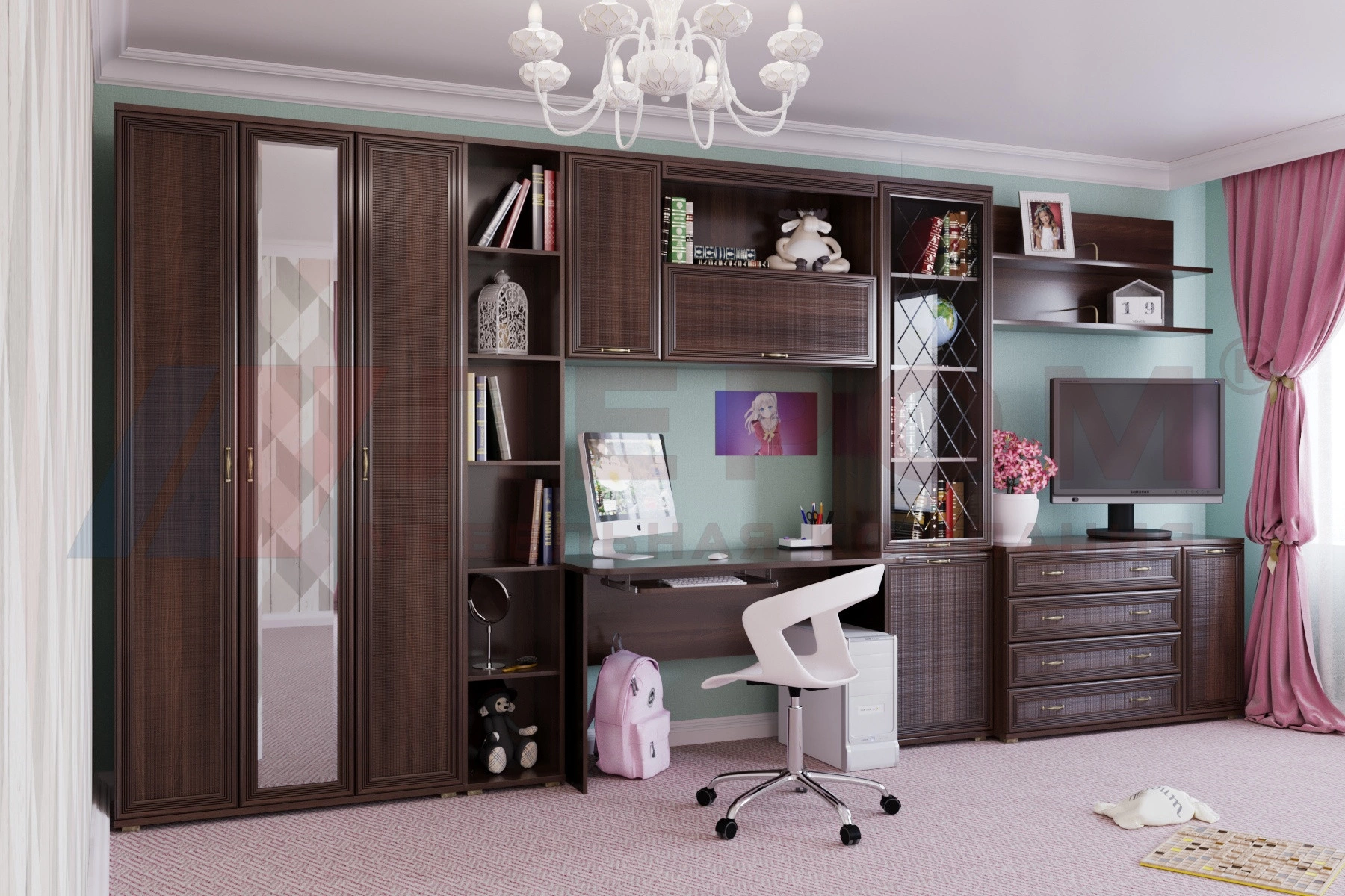 Применяемые материалы: корпус ЛДСП, фасад МДФ, стекло, зеркало.